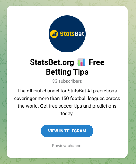 Looking for free, premium football predictions? Join StatsBet on Telegram to get access to our exclusive community where we share daily VIP betting tips for today’s football matches — completely free for our members. Don’t miss out — join us now at t.me/statsbetfree and start winning today!